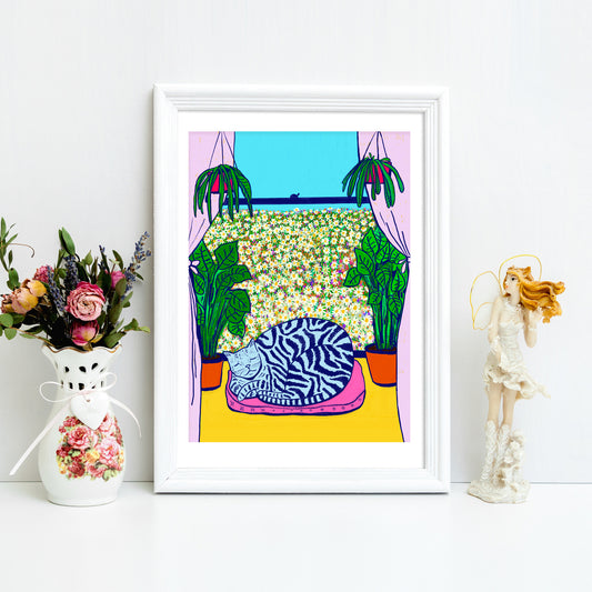 Cat And Flowers - Art Print