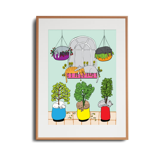 Cats In Window - Art Print
