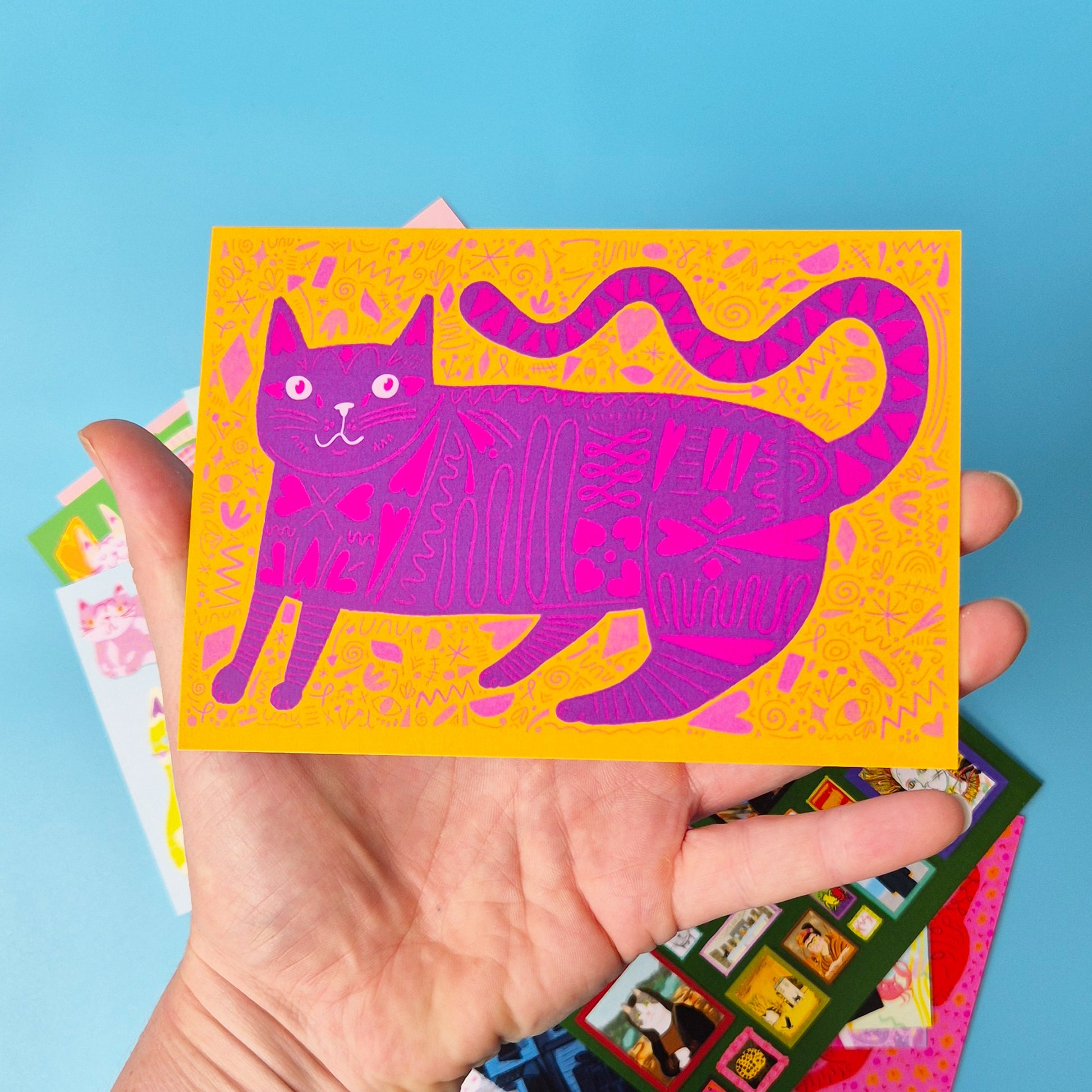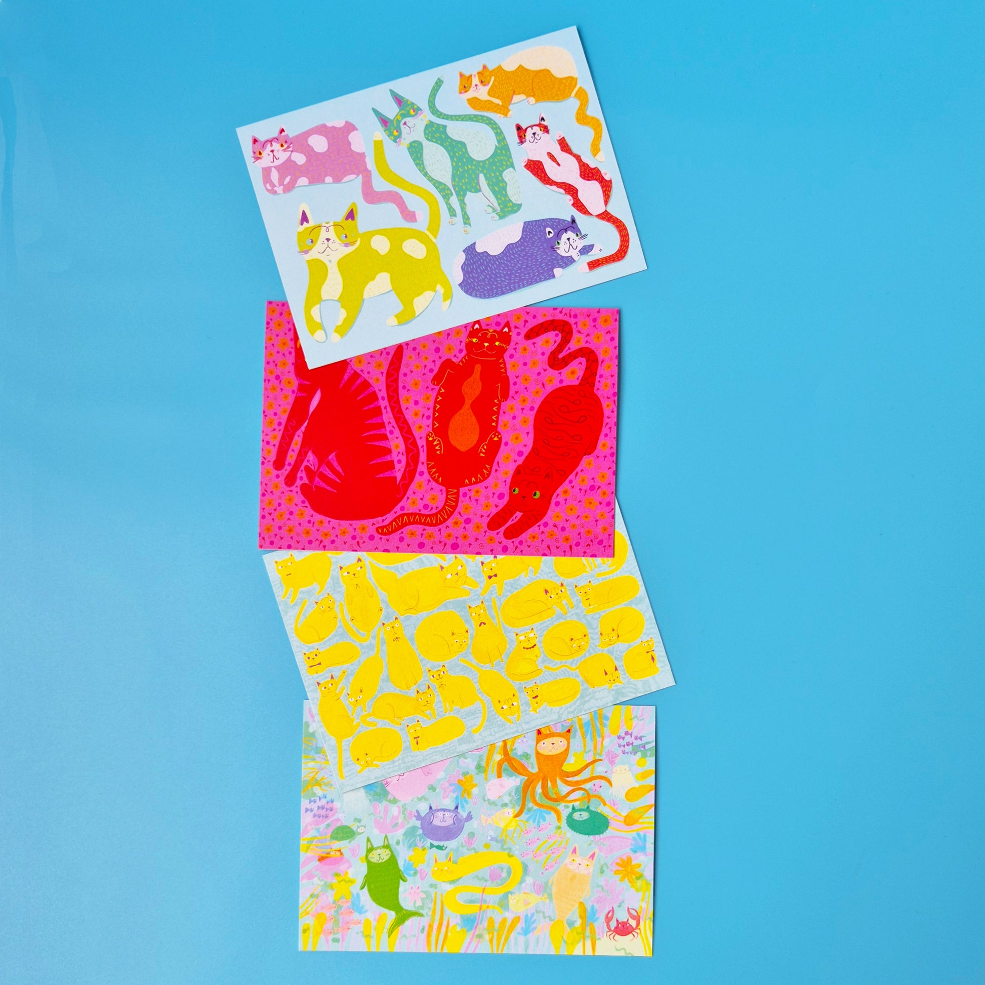 Each postcard features the 12 artworks from our 2026 Kitty Calendar.