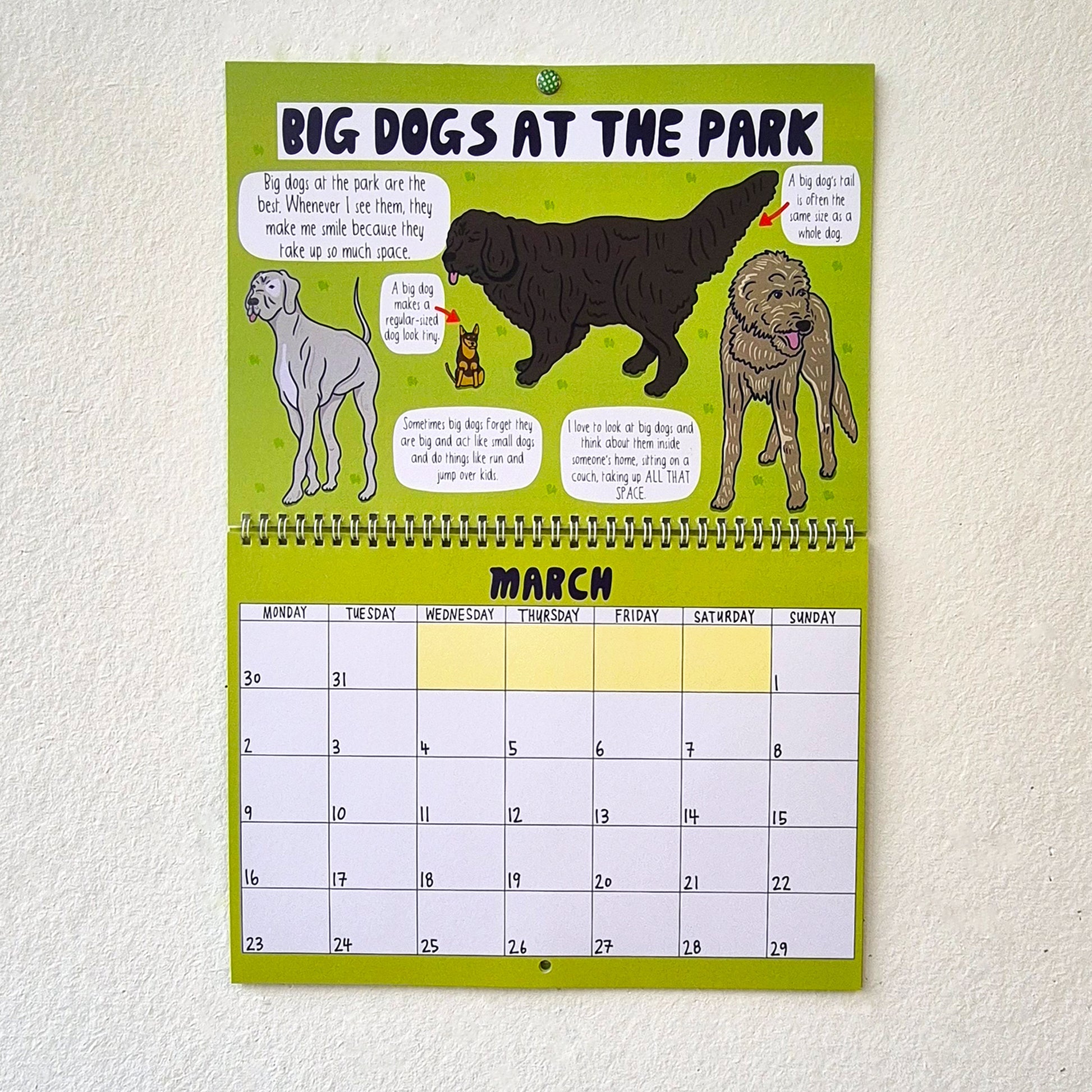 Our 2026 Dog Park Calendar is about my observations of dogs at the dog park. I often went for a coffee after school drop off with my friends and they all had dogs. As a cat person, this was a whole new world for me and I loved watching them and how they all interacted. I decided to put all my dog watching into a calendar. 12 months of doggy goodness!