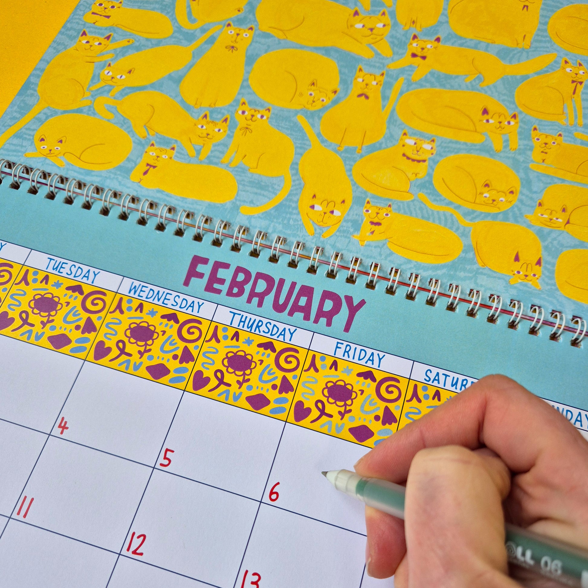 Our 2026 Kitty Calendar is full to the brim with cute cat illustrations, ready to go up on your wall and help you stay organised. When drawing this, our two kitties, Lemmy and Evie were always nearby.